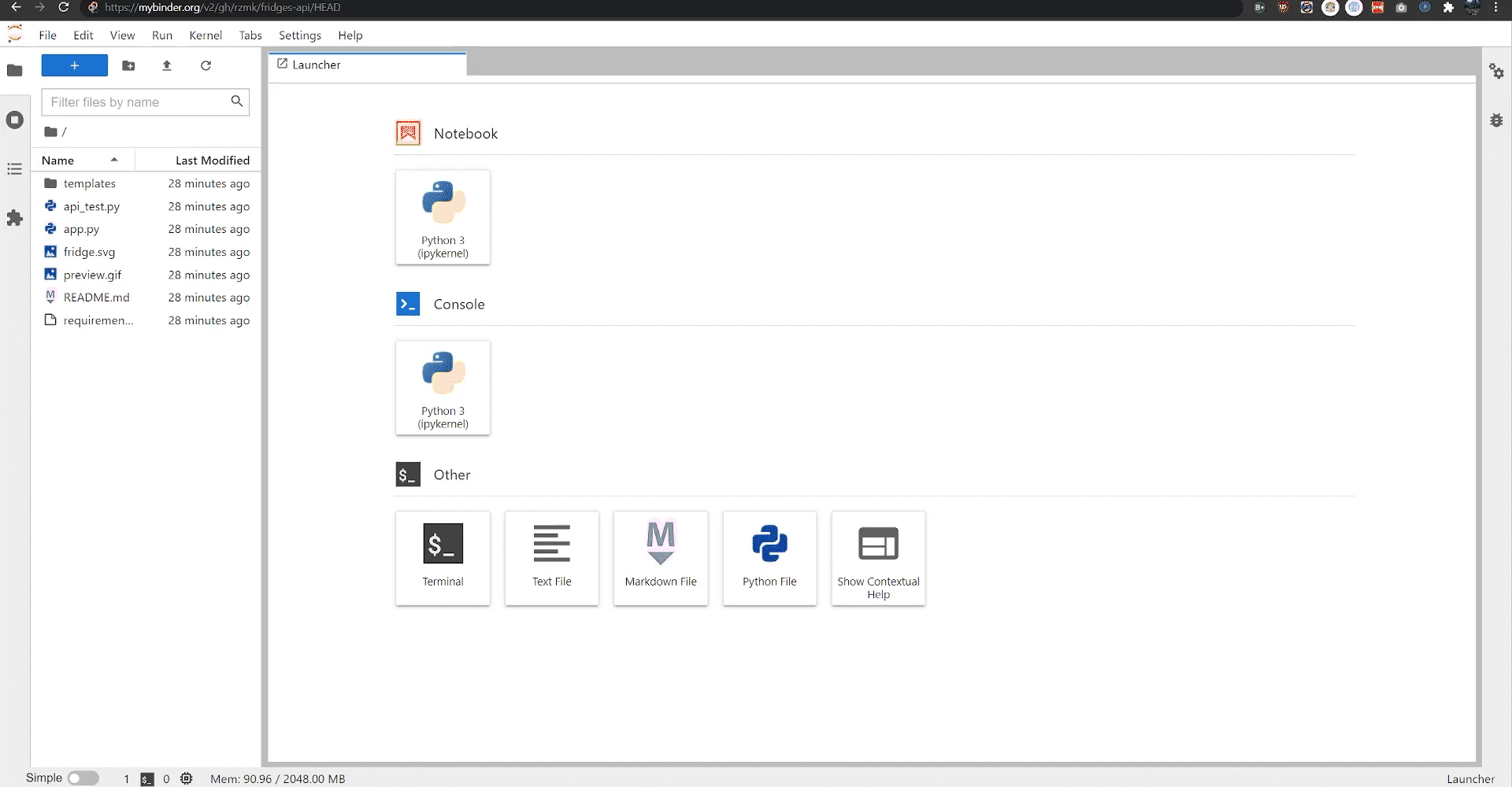 Binder demo and links.